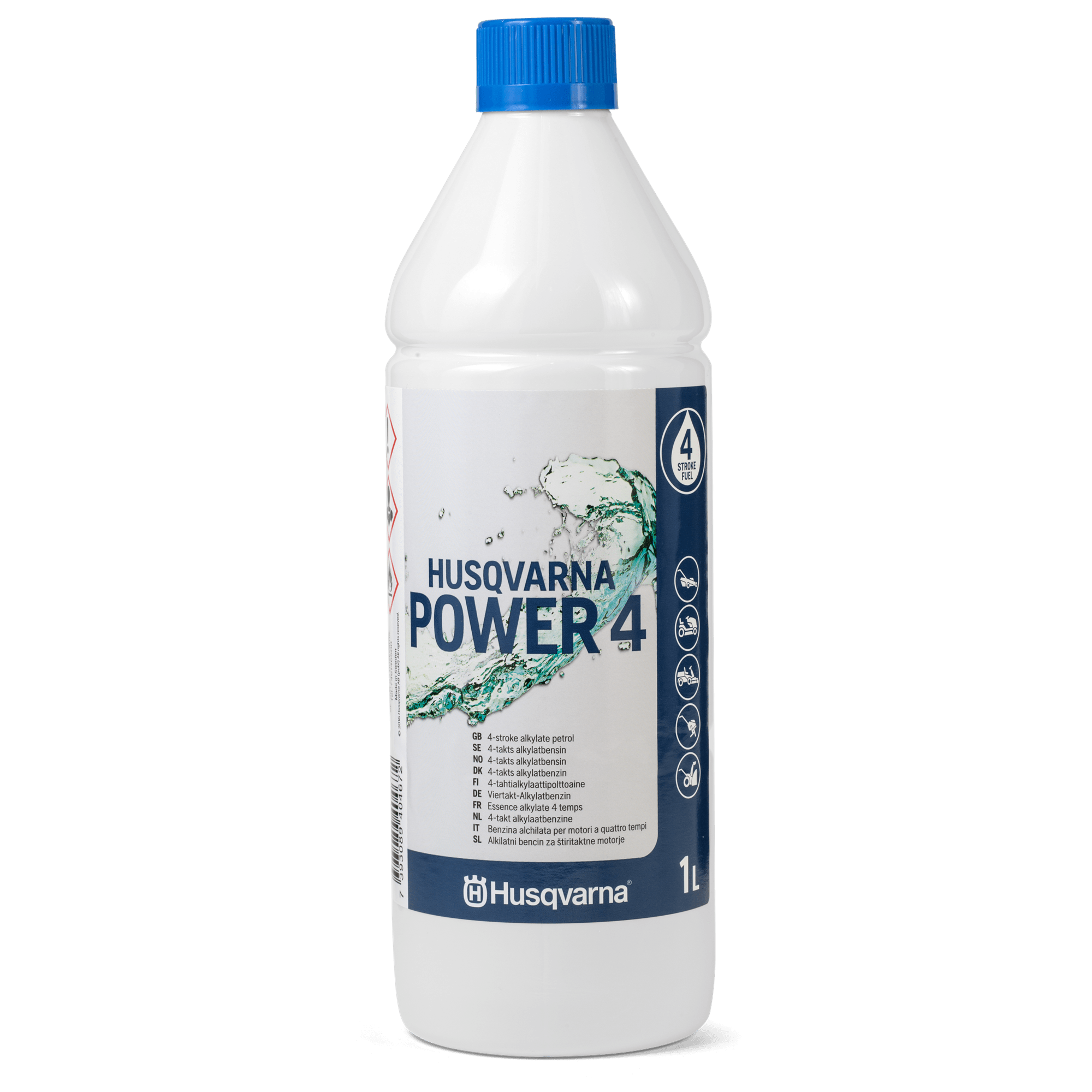 Husqvarna Power 4 alkylatbensin är idealisk för Husqvarna 4-takts motorer. Alkylatbensin ger en renare förbränning och minimerar mängden sot som annars bildas. Detta förlänger motorns livslängd och minskar behovet av underhåll. Reducerad miljöpåverkan genom färre skadliga utsläpp och ökad produktivitet genom hälsosammare arbetsmiljö. Lång lagringstid gör motorn lättstartad även efter långa perioder av icke-användning.