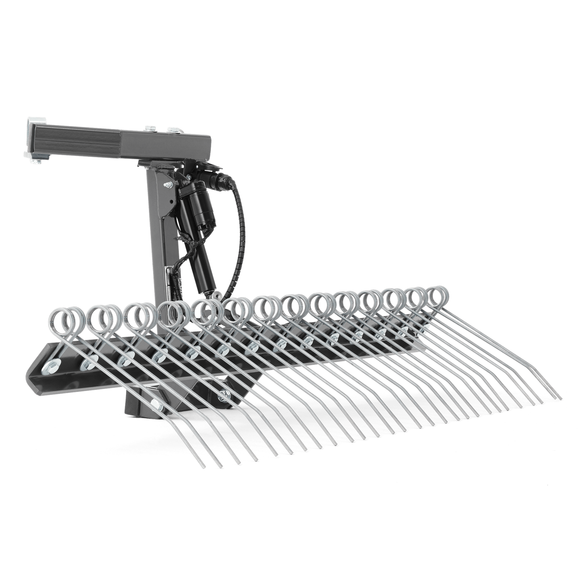 En stabil och pålitlig räfsa att använda tillsammans med Grus- & Ogräsharv för att jämna till upparbetade ytor och samla upp ogräs. Elektrisk höj- och sänkbar gör räfsan till ett ergonomiskt och lättanvänt redskap.