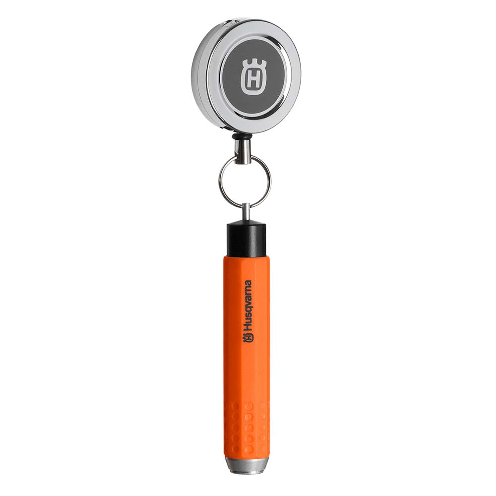 Hållare med fjäderbelastad metallrulle för kritor på 12mm. Robust design med en metallrulle som kan fästas på verktygsbältet eller selen.