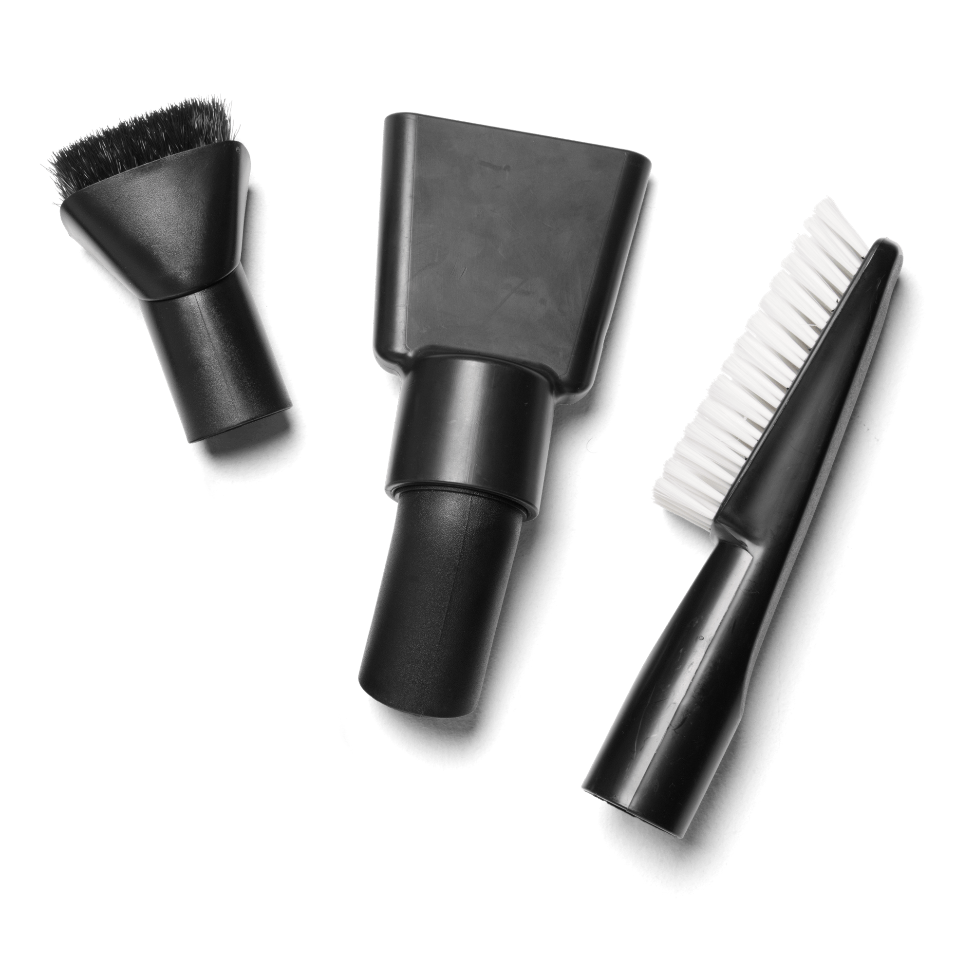 En uppsättning av tre tillbehör som är idealiska för rengöring av fordon. Innehåller en rund borste, en dammborste och ett gummimunstycke