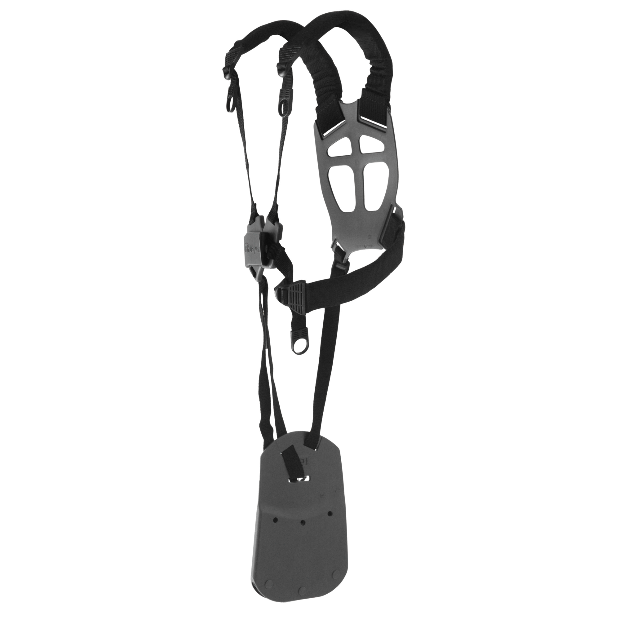 En ergonomisk sele som fördelar trycket opimalt mellan axlar, bröstkorg och rygg. Stoppade remmar och bred ryggplatta reducerar trycket ytterligare. Utrustad med stötdämpad puta som flyter vilket gör att maskinen kan manövreras med minsta möjliga kroppsrörelser.