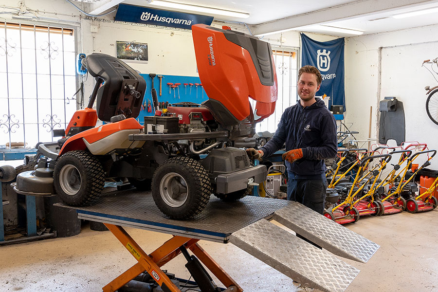 Vi vår verkstad sköter vi både service och reparation av Husqvarnamaskiner. För dem som önskar erbjuder vi även vinterförvaring av automowers, med en all inclusive-vistelse för maskinen! Då får den en ordentlig servicegenomgång med rengöring, knivbyte, funktionskontroll och test av säkerhetsfunktioner, el- och batterifunktion, och självklart även de senaste mjukvaruuppdateringarna.